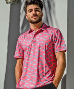 Áo thun polo chơi golf in hình cá sấu màu hồng phong cách mới cho nam, chất lượng cao, dáng rộng, nhanh khô, thoải mái, quần áo chơi golf